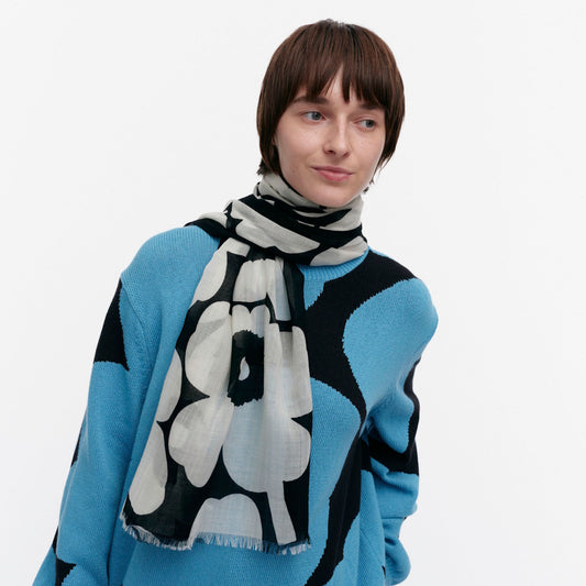 Marimekko Fiore Unikko Wool Scarf Offwhite-Black