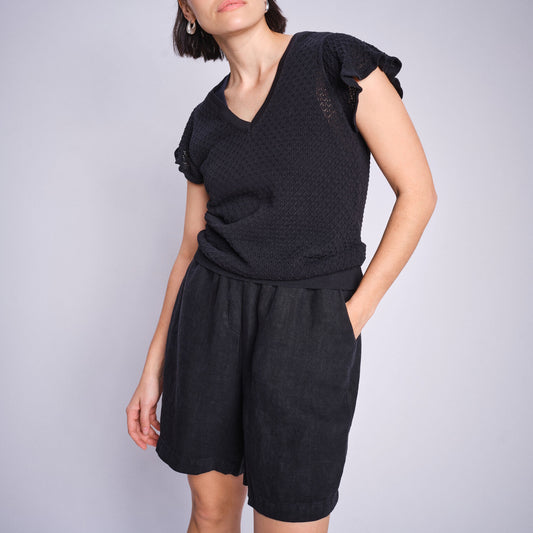 Mos Mosh Emmie Linen Bermuda Shorts Black