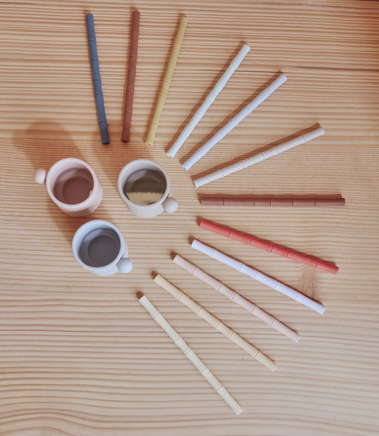 OYOY Bamboo Silicone Straw 6pcs Caramel-Blue