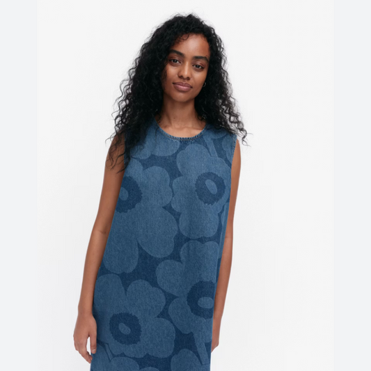 Marimekko Somasti Unikko Maridenim Dress Indigo