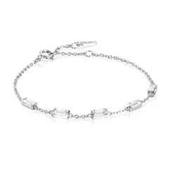 Vintage look bracelet in rhodium-plated recycled sterling silver and five baguette-cut crystal quartz. The bracelet has adjustable size of 16, 17.5 or 19 cm. Décor: length 6.5 x width 3 mm. Crystal quartz: 5 x 0.27 ct.