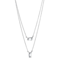 Necklace with one shorter chain and one longer chain in recycled sterling silver, with two baguette-cut crystal quartz. Décor: 6.4 x 3mm, 2pcs x Crystal quartz. Length of necklace is adjustable between 42-45cm.