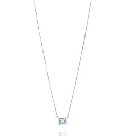 Necklace with a vintage look in recycled rhodium plated sterling silver and pendant with emerald cut Light Blue Topaz. Length of necklace is adjustable between 42-45cm. Décor: 11 x 9 mm. Stone: baby blue topaz 4.30 ct.