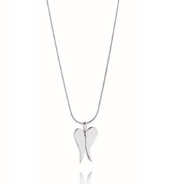 Delicate angel wings in recycled sterling silver. The pendant comes with a snake chain of 45cm in length. The product belongs to the collection For a Good Cause. When purchasing Angels, 100 SEK of the price goes to the Swedish Red Cross.