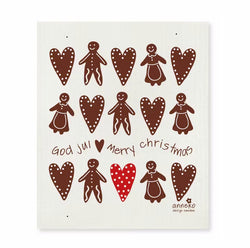 Add festive warmth to your kitchen with the Anneko Gingerbread Dishcloth. Featuring a charming design of gingerbread people and hearts with βGod Julβ and βMerry Christmas,β this eco-friendly cloth captures the joyful spirit of a Scandinavian Christmas.