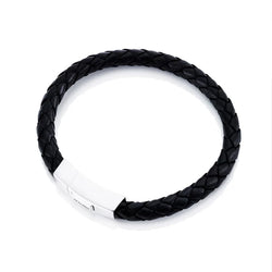 Bracelet in braided leather with a recycled sterling silver latch. Clasp: 25 x 6.5 mm. Leather string: ca 6 mm.