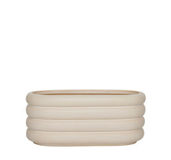 The Awa Pot is a renowned OYOY classic. Elevate your space with its timeless design and unique charm. The reactive glaze ensures each pot is one-of-a-kind, with colours that may vary, adding a touch of individuality to your decor. The pot's elegant expression and organic shape will be beautiful with herbs in the kitchen window or your favourite plants. Measures H10.5cm x L25cm x W12.5cm.