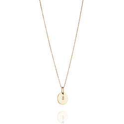 A small plate pendant in recycled 18k gold with a stamped 8 which in Asia is a symbol for fortune. The necklace comes on a bead chain measuring 45cm in length. Décor: Ø 14.5 mm.