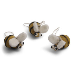 Handmade felted hanging decorations measuring 3.5cm x 2cm each.
