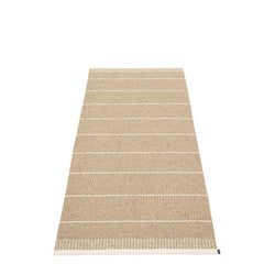 BELLE is a rug design that never fails to impress, featuring soft shapes and versatile colour options, including both vibrant and natural earthy shades. What sets BELLE apart is its unique metallic border, adding a captivating twist to the classic design. Crafted with Pappelina's exclusive weaving technique, BELLE boasts an extra thickness that enhances its visual appeal and luxurious feel. This rug is water-resistant, reversible, hypoallergenic, UV-resistant, and machine washable, making it perfect for use indoors and outdoors. Its soft texture provides comfort underfoot, enhancing the overall experience.