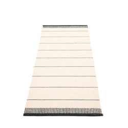 BELLE is a rug design that never fails to impress, featuring soft shapes and versatile colour options, including both vibrant and natural earthy shades. What sets BELLE apart is its unique metallic border, adding a captivating twist to the classic design. Crafted with Pappelina's exclusive weaving technique, BELLE boasts an extra thickness that enhances its visual appeal and luxurious feel. This rug is water-resistant, reversible, hypoallergenic, UV-resistant, and machine washable, making it perfect for use indoors and outdoors. Its soft texture provides comfort underfoot, enhancing the overall experience.