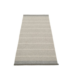 BELLE is a rug design that never fails to impress, featuring soft shapes and versatile colour options, including both vibrant and natural earthy shades. What sets BELLE apart is its unique metallic border, adding a captivating twist to the classic design. Crafted with Pappelina's exclusive weaving technique, BELLE boasts an extra thickness that enhances its visual appeal and luxurious feel. This rug is water-resistant, reversible, hypoallergenic, UV-resistant, and machine washable, making it perfect for use indoors and outdoors. Its soft texture provides comfort underfoot, enhancing the overall experience.