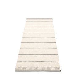 BELLE is a rug design that never fails to impress, featuring soft shapes and versatile colour options, including both vibrant and natural earthy shades. What sets BELLE apart is its unique metallic border, adding a captivating twist to the classic design. Crafted with Pappelina's exclusive weaving technique, BELLE boasts an extra thickness that enhances its visual appeal and luxurious feel. This rug is water-resistant, reversible, hypoallergenic, UV-resistant, and machine washable, making it perfect for use indoors and outdoors. Its soft texture provides comfort underfoot, enhancing the overall experience.
