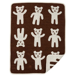 This Bruno Blanket lends a playful element to your little one's cot or pram. It features an all-over bear design on both sides, so it's reversible, and it's an easy-to-care-for extra breathable layer for the cooler months. These soft jacquard woven blankets are made using organic cotton, which means the cotton has been cultured without artificial fertilizer or pesticides. Measures 70x90cm. Made of 100% organic cotton chenille. Please click here for blanket care information.