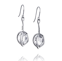 Earrings with crystal quartz captured in recycled sterling silver. Earring: 52 mm length. Décor: 18 mm width. Crystal quartz: 2 x 12 ct.