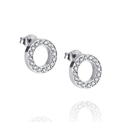 Circle-shaped earrings in 18k recycled white gold with brilliant cut diamonds. Earring: ø 11mm. Diamonds: 32pcs x 0.01ct brilliant cut.