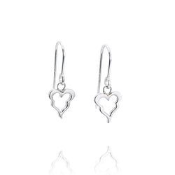 Heart shaped hook earrings in sterling silver. Earring: ca 25mm. Decor: 9.5 x 10.5mm.