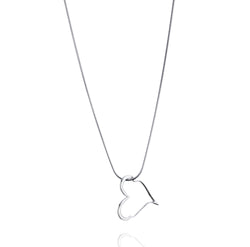 A crazy heart pendant in recycled sterling silver hanging on a snake chain 45cm in length. Décor: 28 mm length x 28 mm width.