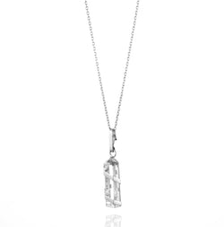 Necklace with crystal quartz mounted in recycled sterling silver with the text "Define Normal" stamped on the silver. Décor: 43.5mm length. Setting: 13mm width. Crystal quartz: ca 38.0 ct. Length of chain is 80cm.