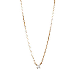 Necklace in recycled 18k gold with a princess cut diamond. Décor: claw setting 4 x 4 mm. Diamond: 0.12 ct tw/vs princess cut.