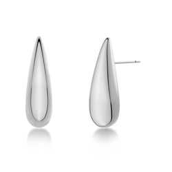Crest earrings are designed to sit high on the ear with their pointed end and narrow drop shape. These Crest Studs are high and slender, making them perfect for both everyday wear and special occasions. Designed with large backs for a comfortable fit, they are seen here in shiny stainless steel. Measures 11x33mm.