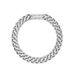 The Curb Chain is a wider bracelet that can be worn alone or layered with other bracelets. Seen here in shiny stainless steel. Chain size 7x3mm, bracelet length 18cm.Β