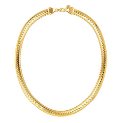 The Edblad Hera Chain Necklace in Gold is a striking piece that exudes confidence and sophistication. Featuring a wide, polished 14k gold-plated chain with a sleek, serpentine texture, this necklace lays flat against the collarbone for a bold yet elegant silhouette. Perfect for adding impact to both everyday and evening looks, it captures the essence of modern Scandinavian glamour with timeless appeal.