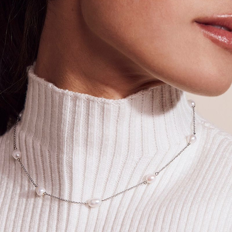 Perla is a series of beautiful freshwater pearls. Their natural shape offers excitement and elegance, as well as a unique look. Perla Necklace Multi features eight freshwater pearls linked by a gorgeous chain in shiny stainless steel.