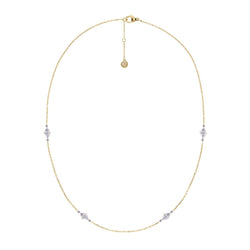 Size of decorations 12mm. Adjustable length of chain 42cm, 43.5cm or 45cm. Cubic zirconia and shiny 14k gold plated stainless steel. Nickel safe and water resistant.