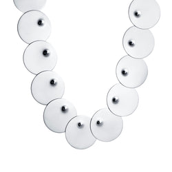 Sterling silver necklace with round plates with a dent on each. Décor: Ø 45mm.