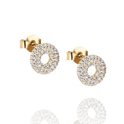 Earrings made of recycled 18k gold, shaped as a round hoop with diamonds. Outer diameter 9mm.