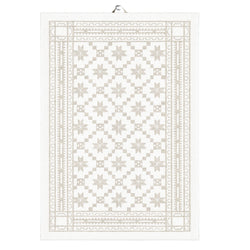 The Ekelund Attebladrose 08 Tea Towel draws on timeless Scandinavian tradition with its intricate eight-petal rose motif - an age-old Nordic symbol of harmony and protection. Woven in Sweden from a blend of 55% cotton and 45% linen in elegant neutral tones, this tea towel brings a refined, heritage-inspired touch to your kitchen. A beautiful balance of functionality and craftsmanship. Measures W35cm x L50cm.