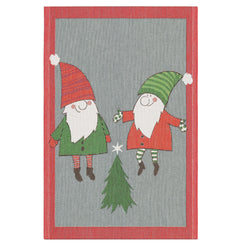 Add a playful touch of Scandinavian Christmas charm with the Ekelund Tomtenissar Tea Towel. Measuring 40x60cm, this delightful design features two cheerful tomtenissar (Christmas elves) dressed in festive red and green, dancing around a small fir tree.