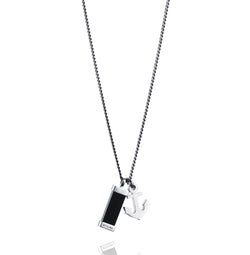 A unisex necklace in recycled sterling silver with a hanging anchor pendant and an onyx plate. Décor: 30 x 9.5 mm, 22.5 x 16 mm. Onyx: ca 6.8 ct.