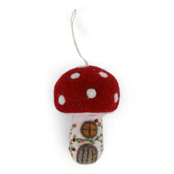 Add a touch of woodland magic to your festive styling with the Gry & Sif Mushroom House Decoration β Small. This charming felted mushroom, with its bright red cap and white spots, features a tiny stitched doorway and window, making it look like a fairytale forest cottage.