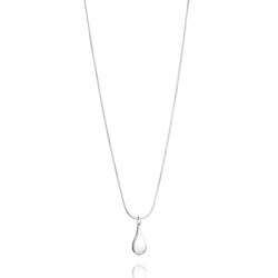 A tear shaped pendant in sterling silver on a snake chain. Pendant measures 24mm (L) x 9.5mm (W). Chain length 45cm.