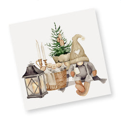 Create a cosy and inviting holiday table with the Hemtrevlig Jul Paper Napkins. Measuring 33cm square (unfolded), these festive napkins feature a charming winter scene with a gnome in a knitted hat, glowing candles, a lantern and a tiny Christmas tree. The soft, neutral tones bring a warm, homely feel to seasonal gatherings. Ideal for Christmas meals, fika moments or festive entertaining with a Scandinavian touch.