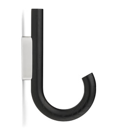 Hook hanger is inspired by the end of an umbrella. Hook can be used in the hallway for jackets, bags and umbrellas. It can be used in the kitchen for tea towels and aprons. Or it can be used in the bathroom for towels and bathrobes. Hook hanger is made in solid oak with a chrome bracket. Measures 12.8cm x 19cm.