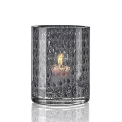 Hurricane Spritz is created through a process whereby hot glass is pressed into a particular metal mould, after which sodium carbonate is infused, creating small magical bubbles inside the glass which form the distinctive pattern of the collection.Β During the manufacturing process, the bubbles rise to the top of the glass leaving a fossil-like imprint on the rim. As with other products, the Hurricane Spritz can double as a beautiful vase. Measures 18cm (H) x 14cm (Dia). Weighs between 2.9kg - 3.3kg. Recommended to use a 5cm pillar candle. Please click here for care instructions.