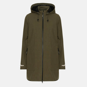 This functional and feminine multipurpose raincoat with set-in sleeves from Ilse Jacobsen has a comfortable fit with an A-figure flattering silhouette. The stretchable shell fabric is a 3-layer composition with a TPU (thermoplastic polyurethane) membrane which is waterproof and breathable. The soft-shell raincoat is bonded with soft fleece on the inside, adding unique comfort and warmth.