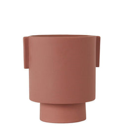 Make sure your flowers and plants are presented in the best possible way with this Inka Kana Pot. The Inka Kana Pot with sienna colouring is minimalistic but at the same time modern and unique because of the decorative handles. The pot is handmade of 100% ceramic. Measures Ø15 x H16cm.