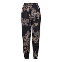 The Cora Pants are easy to dress up or down and can be used for both festive occasions and as an everyday outfit. Loose, comfortable pants, they have two side pockets, elastic and a tie band at the waist and elastic at the ankles. Made in machine washable, wrinkle-resistant and eco-friendly satin.