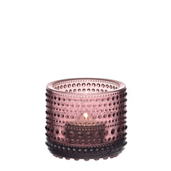 The soft glow of the Kastehelmi tealight candle holder creates warm ambiance. The natural shade of heather brings warmth and elegance to all rooms. The refined and vivid glass bead surface reflects light and resembles morning dew drops. By combining different coloured candle lights, you can create a personal atmosphere. The heather-coloured Kastehemli is also suitable as a timeless and beloved gift for your loved ones. Striking alone or grouped in a collection. Measures 6.4cm in height.