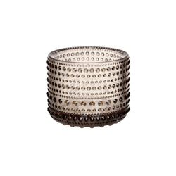 The soft glow of the Kastehelmi tealight candle holder creates warm ambiance. New natural linen adds casual sophistication that fits any interior. Striking alone or grouped in a collection. Measures 6.4cm in height.