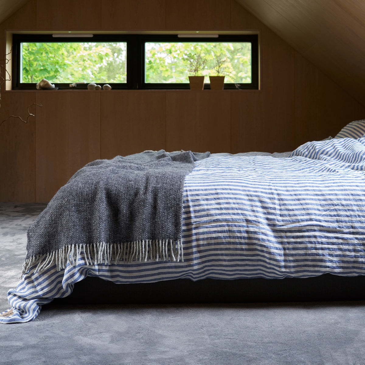This stylish throw, made of 100% Swedish wool, is a perfect combination of function and aesthetics. In the size of 130x200cm, it is ideal to wrap around yourself during cool evenings, while also serving as a beautiful interior detail in your home. The naturally soft wool gives a pleasant and warming feeling, and its durable quality means that the throw can adorn your sofa, bed or armchair for many years to come. Pleaseย click hereย for blanket care information.