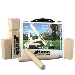 Kubb is an addictive and seriously fun outdoor throwing game from Sweden. Kubb dates back to the Vikings and is perfect for the Australian competitive spirit and love of the outdoors. Kubb is a fabulous team game but can be played one vs one as well. Built to last from quality shock resistant birch. Contains: 1 King (7cm x 30cm), 10 Kubbs "soldiers" (5.5cm x 15cm), 6 throwing batons (3.5cm x 30cm), 4 corner posts. Weighs 4.5kg.