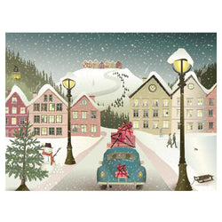 Share the joy of a magical winter scene with the Vissevasse Let it Snow Card. Featuring pastel-coloured townhouses, a vintage car carrying gifts and softly falling snow, this charming illustration perfectly captures the nostalgia and warmth of a Scandinavian Christmas. Printed on FSC-certified paper, itβs ideal for sending heartfelt holiday wishes or accompanying a thoughtful festive gift. A timeless card to be treasured by its recipient.