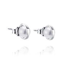 Small earrings in recycled 18k white gold with a freshwater pearl. Décor: ca 6.5 mm. Freshwater pearl: Ø 5 mm.