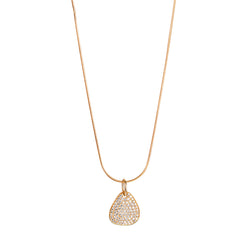 Pendant shaped as a rose petal in white gold and covered in diamonds. Petal measures 8.5 x 8.5mm. Diamonds are 0.34ct tw/si brillant cut. Chain length is 45cm.