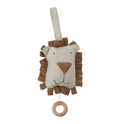 The Lobo Lion Music Mobile creates a cosy atmosphere to help your child fall asleep. The calm melody starts with the ring at the bottom is pulled down. Made of 100% organic cotton with a polyester filling. Measures 16cm (H) x 8cm (W).